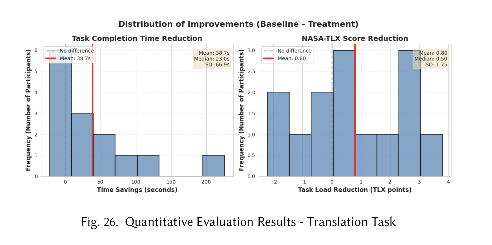 The controlled evaluation (n=8) showed that participants using Rosetta completed multilingual research tasks 32% faster than with a standard AI interface. NASA-TLX scores decreased by an average of 24%, indicating reduced cognitive workload. Most notably, participants reported feeling less anxious about making language mistakes and more confident in their ability to verify AI-generated content.