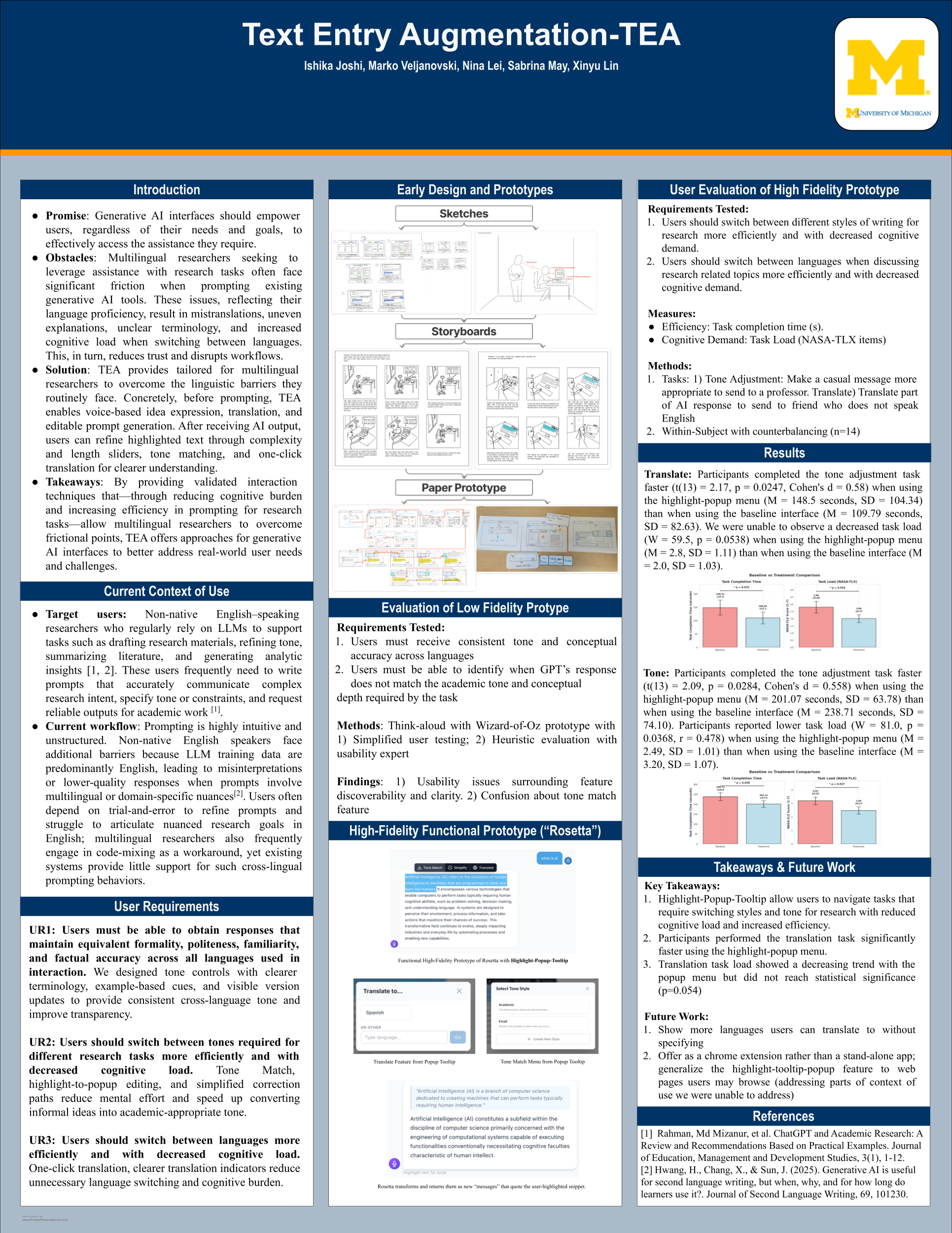 Figure on the right is the Poster presented at the University of Michigans EECS research poster presentation. In addition to the Poster we provided a high Fidelity prototype.